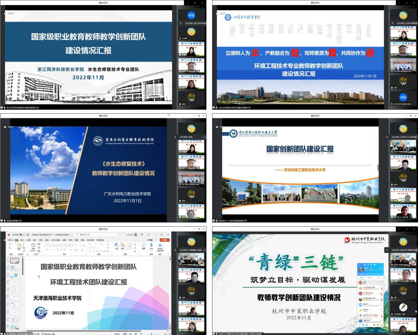 随后,共同体成员单位——广东水利电力职业技术学院、浙江同济科技职业学院、山东水利职业学院、河北科技工程职业技术大学、天津渤海职业技术学院、杭州市中策职业学校创新团队负责人分别进行汇报发言,介绍团队建设计划完成情况、团队建设工作开展情况、 团队建设过程中存在的主要问题、取得的成果经验等方面内容。