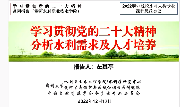 郑州大学左其亭教授作《学习贯彻党的二十大精神 分析水利需求及人才培养》报告