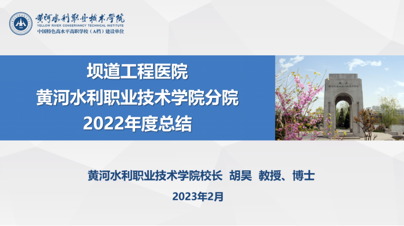 胡昊代表坝道工程医院黄河水院分院从人才培养、科研与技术服务和科普建设三方面汇报了2022年工作开展情况与2023年工作计划。胡昊表示,黄河水院分院成立以来,坚持立德树人、与时俱进、产教融合,连续两年主办全国职业教育水利大类专业课程思政集体备课,动态更新线上线下资源体系,全面建成黄河明珠产业学院,在职业教育人才培养方面再上新高;分院以水利特色技术攻关与转化、生产性材料与结构检测、流域行业人才培养为核心,打造了科技研发与技术服务体系,聚焦应用技术研发,解决行业企业技术难题;通过构建“智能化水利水电工程技术实践基地”、“线上博学水利平台”、“安全体验中心”等,打造了立体化科普教育基地。胡昊强调,2023年我校将持续深化坝道工程医院人才培养作用、持续推进特色技术研发支撑技术服务、持续完善工程技艺与文化科普环境,借助总院平台,服务国家重大战略,服务行业企业,作出“黄河水院”特色贡献。