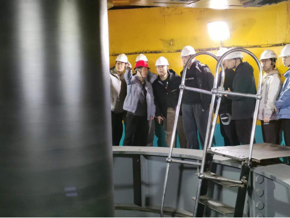 校外兼职教师由三门峡黄河明珠集团黄河工匠、河南省劳模、技术能手、技术骨干组成。三门峡发电公司技术骨干为学生集中讲解入厂安全教育、三门峡水利枢纽工程相关内容,牢固树立“安全第一”的教学思想,同时使学生充分了解三门峡水利枢纽建设历程及工程效益。现场参观大坝、泄水排沙孔、排沙洞、廊道、电站厂房、变压器、开关站等,在大坝廊道内学习测压管、测深钟、电测水位计、引张线、垂线、静力水准等设备的组成、作用、工作原理、使用方法,让同学们发现大坝安全的“保护神器”,在运行调度中控室,同学们看到了大坝安全运行的秘密,大坝的水位、流量、温度、渗流、变形等数据都集中传输到中控室,被最强大脑记忆,随时调取、查看,出现状况,报警……同学们一个个听得入了迷、着了魔。