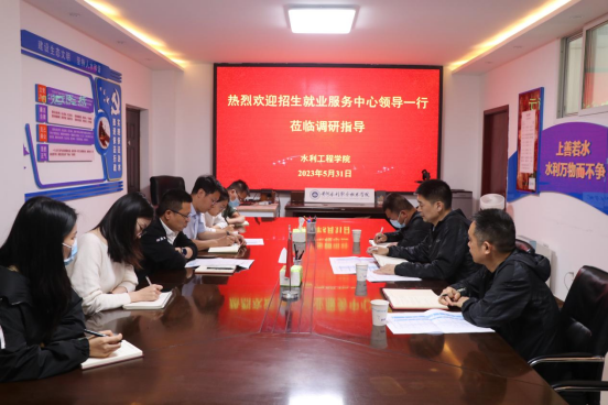 5月31日上午,我校招生就业服务中心商坤主任、万勋副主任、唐远文科长一行来我院调研2023届毕业生就业工作。水利工程学院院长雷恒、副院长陈西良、毕业班班主任代表吴伟、毕业班辅导员代表赵诗捷、李瑞以及校企办成员朱永娇参加了座谈会。