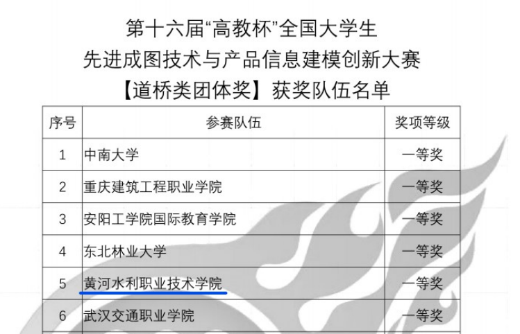 7月29日—7月31日,第十六届“高教杯”全国大学生先进成图技术与产品信息建模创新大赛总决赛在重庆交通大学和重庆建筑工程职业学院成功举办。全国742所高校、1188支代表队、11334人次线下参赛。我校十六年来第十四次获得水利类团体一等奖,也是2019年国家“双高计划”以来“五连冠”。