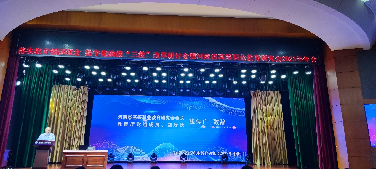 8月25日,落实教育强国理念 数字化助推“三教”改革研讨会暨河南省高等职业教育研究会2023年年会在郑州河南经贸职业学院召开。我校党委副书记、校长、河南省高等职业教育研究会副会长胡昊教授受邀参加并担任研讨会主持人,教务处、双高办及水利工程学院主要负责人随同参会。河南省教育厅党组成员、副厅长、高等职业教育研究会会长张传广出席开幕式并致辞,党组成员、副厅长朱自锋出席闭幕式并作总结讲话。省高等职业教育研究会98个会员单位、300余名会员代表参加会议。