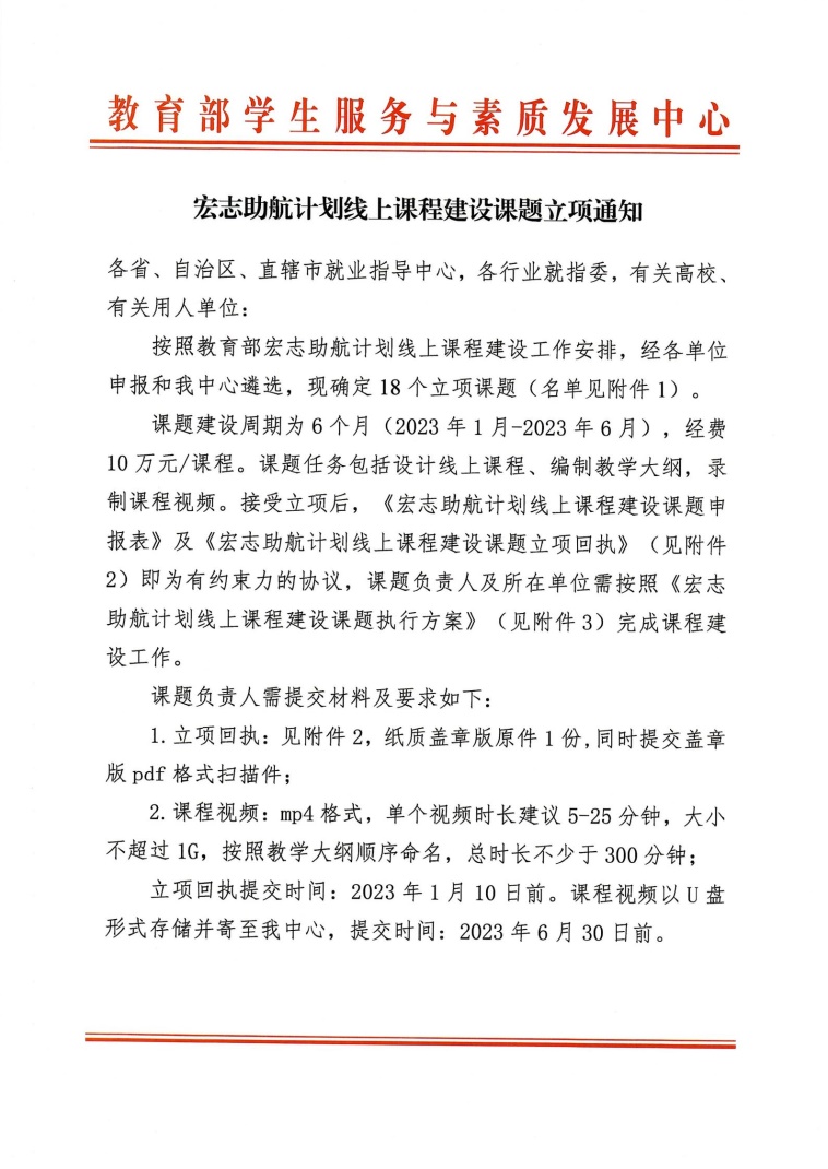 本次教育部“宏志助航计划”线上课程建设,组织全国高校申报,最终遴选出18门课程,其中我校立项1门,为全省唯一入选高校。在学校领导、招就办和水利工程学院领导的指导支持下,课程团队教师严格按照课程建设要求,高质量完成课题各项任务,课程建设结题材料得到了教育部相关专家的一致好评。