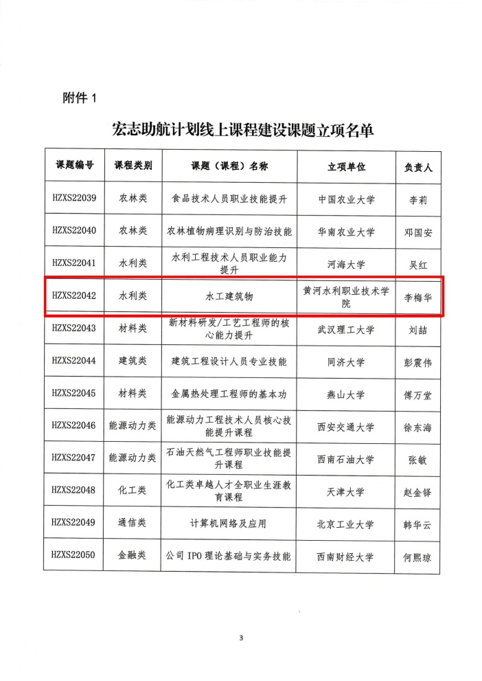近日,教育部学生服务与素质发展中心通知,由我校水工建筑教研室主任李梅华副教授主持的2023年“宏志助航”线上课程建设课题《水工建筑物》顺利通过结题验收。