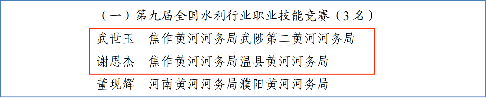 武世玉、谢思杰为黄河水利委员会焦作黄河河务局武陟第二黄河河务局和温县黄河河务局职工,在今年上半年举行的第九届全国水利行业职业技能竞赛中荣获冠、亚军。我校水利水电建筑工程高水平专业群高度重视技术技能人才培养,注重发挥专业优势将技能人才培养与黄河保护治理一线需求相结合,为黄河防汛抢险、河道巡查、维修养护、水文勘测、闸门运行、水土保持等生产一线培养了大批高素质技术技能人才。两位优秀毕业生荣获“全国技术能手”称号,是学校水利水电建筑工程高水平专业群建设的又一硕果。