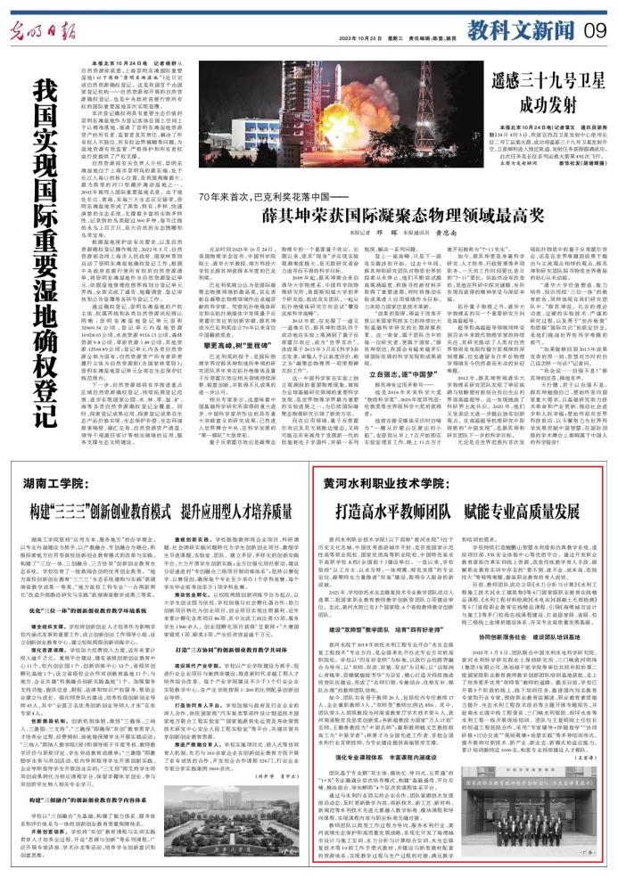 2023年10月25日,《光明日报》刊发“打造高水平教师团队 赋能专业高质量发展”,对以我院教工水利工程与水动党支部为主要支撑的国家级水生态修复技术专业职业教育教师教学创新团队进行了专题报道,10月17日,《河南日报》的探访高校“牛”专业栏目也对水生态修复技术专业建设成效进行了报道。