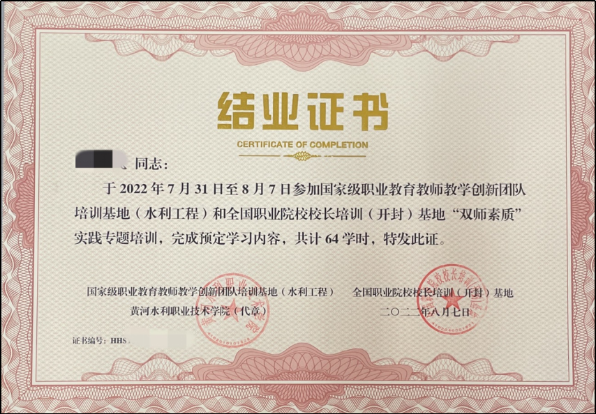 为提升教师的实践教学能力,打造新时代高素质“双师型”教师,2022年7月31日至8月7日,水利工程学院组织教师参加国家职业教育教师教学创新团队培训基地(水利工程)和全国职业院校校长培训(开封)基地“双师素质”实践专题培训。共有60名教师参与了此次培训。