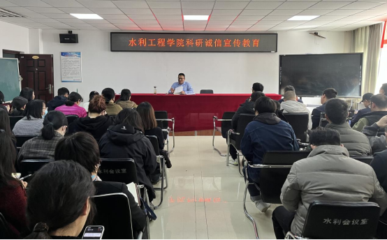 为全面引导教师自觉遵守科研诚信,严肃抵制学术不端行为,营造良好的学术氛围,水利工程学院于2024年3月12日至19日组织全体教师开展了“弘扬科学精神,坚守科研诚信”为主题的专项教育活动。本次活动分为全院集中学习、教师个人自学、签署科研诚信承诺书三个环节。