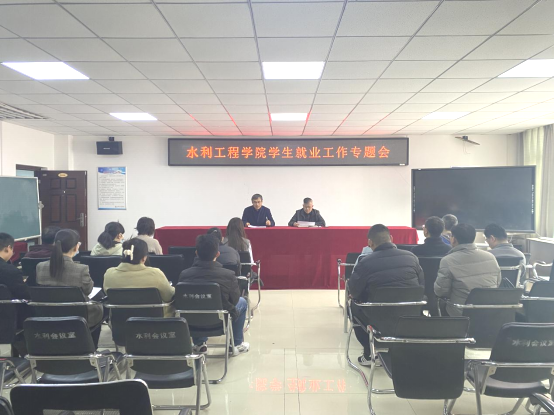 3月26日下午,水利工程学院学生就业工作专题会在5号实训楼5310举行,党总支书记王建设,副院长谭建领出席会议,学院校企办、毕业班班主任参加会议。会议由谭建领主持。