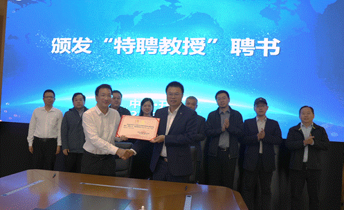 胡昊为梁东方颁发特聘教授聘书。仪式结束后,梁东方教授一行参观了水利工程学院、土木与交通工程学院、测绘工程学院、环境工程学院等实验实训场馆。(供图:党委宣传部)
