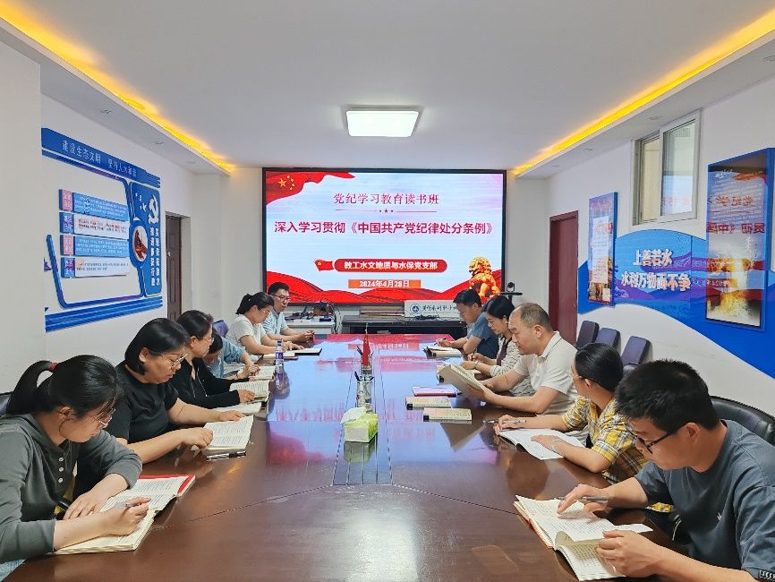 4月30日下午,在学院党总支的统一部署下,各党支部根据《水利工程学院各党支部党纪学习教育计划表》,开展了《中国共产党纪律处分条例》专题学习研讨活动。在学习过程中,各党支部紧密结合实际,创新学习方式,采取书记领学、集体研讨、交流发言等方式,深入学习领会《条例》的丰富内涵和核心要义。