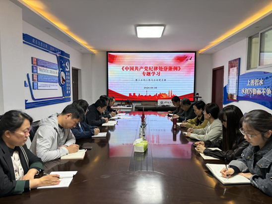 为深入贯彻落实中共中央办公厅《关于在全党开展党纪学习教育的通知》精神,按照学校党委关于党纪学习教育工作的有关部署,依据《水利工程学院党纪学习教育实施方案》,教工水利工程与水动党支部于2024年4月20日在SY5312开展了《中国共产党纪律处分条例》专题学习活动。