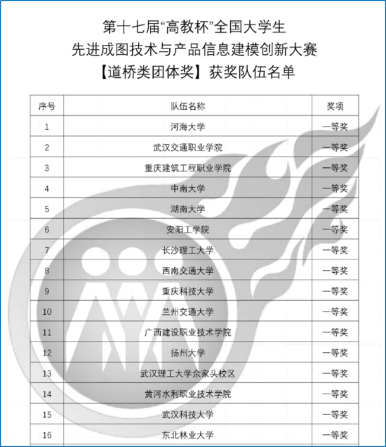 7月26日—7月29日,第十七届“高教杯”全国大学生先进成图技术与产品信息建模创新大赛总决赛在贵州大学成功举办,全国895所高校、16294名队员参赛。我校水利工程学院、土木与交通工程学院、机械工程学院、电气工程学院师生组建的5支代表队,参加了水利、道桥、建筑、机械、电子五个类别的成图赛道和创新赛道的比赛。经过激烈角逐,5个代表队分别斩获成图赛道的水利类、道桥类和建筑类团体一等奖、机械类团体二等奖,电子类团体三等奖;获得水利创新赛道一等奖、桥梁数字化创新设计赛道一等奖、轻量化设计赛道一等奖、BIM创新应用赛道和增材制造赛道三等奖的优异成绩,共获得团体一等奖6项、二等奖3项、三等奖4项。我校水利类成图赛项第十五次获得团体一等奖。