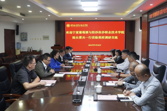 9月26日,宁夏葡萄酒与防沙治沙职业技术学院校长曹兵、副校长王金成一行6人到我校调研交流。我校党委书记周保平、副校长周志琦出席交流活动,水利工程学院等部门参加交流。