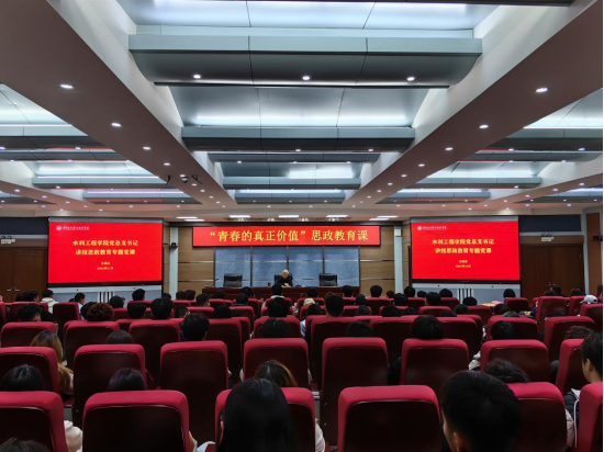 11月15日中午,水利工程学院党总支书记王建设利用12:30-13:30一个小时时间在3号实训楼水利报告厅,为学院学生干部讲授了一堂主题鲜明、意义深远的思政教育专题党课——“青春的真正价值”。会议由副书记李建主持,学院全体辅导员及主要学生干部参加会议。