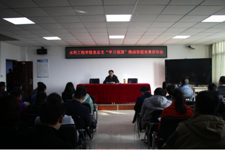 为进一步推动水利工程学院“不忘初心、牢记使命”主题教育工作,2019年11月26日,水利工程学院党总支在SY5310组织开展“学习强国”挑战答题竞赛启动会。会议由党总支书记孙天星主持。