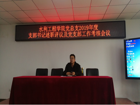 2019年12月24日下午,水利工程学院教工水工技术与管理支部在SX5310参加了支部书记述职评议及党支部工作考核会议,水利工程学院党总支书记孙天星主持,教工水工技术与管理支部全体党员参加了本次会议。
