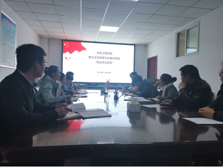 2019年11月29日,教工水文地质与水保党支部在5号实训楼5312会议室,召开了2019年民主评议党员支部大会。本次大会由党支部书记冯峰主持,支部成员悉数参与了本次大会,大会坚持实事求是、民主公开、教育管理监督为一体的原则。