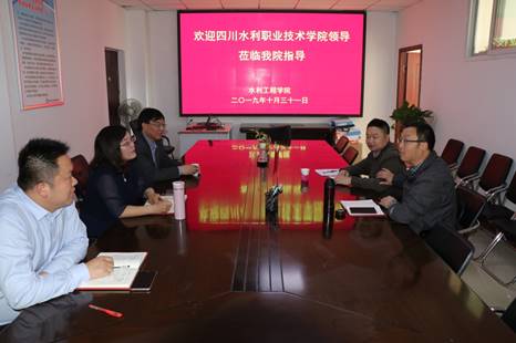 2019年10月31日上午,四川水利职业技术学院副校长张智涌、教务处副处长杨中瑞到我院考察交流。双方交流座谈会在水利工程学院SY5312会议室举行。水利工程学院院长陶永霞、副院长闫国新、水利水电工程技术专业带头人梁建林参加了座谈会,会议由陶永霞主持。