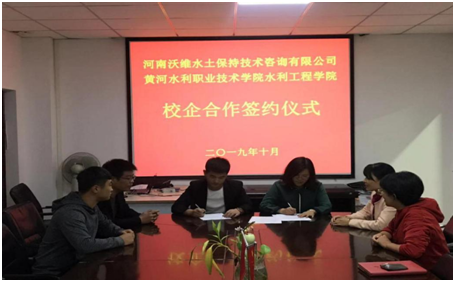10月14日下午,黄河水利职业技术学院水利工程学院与河南沃维水土保持技术咨询有限公司校企合作签约仪式在SY5312顺利举行。我院院长陶永霞、教研室主任李忠、水土保持专业带头人侯礼婷及水土保持专业骨干教师成员出席了签约仪式。