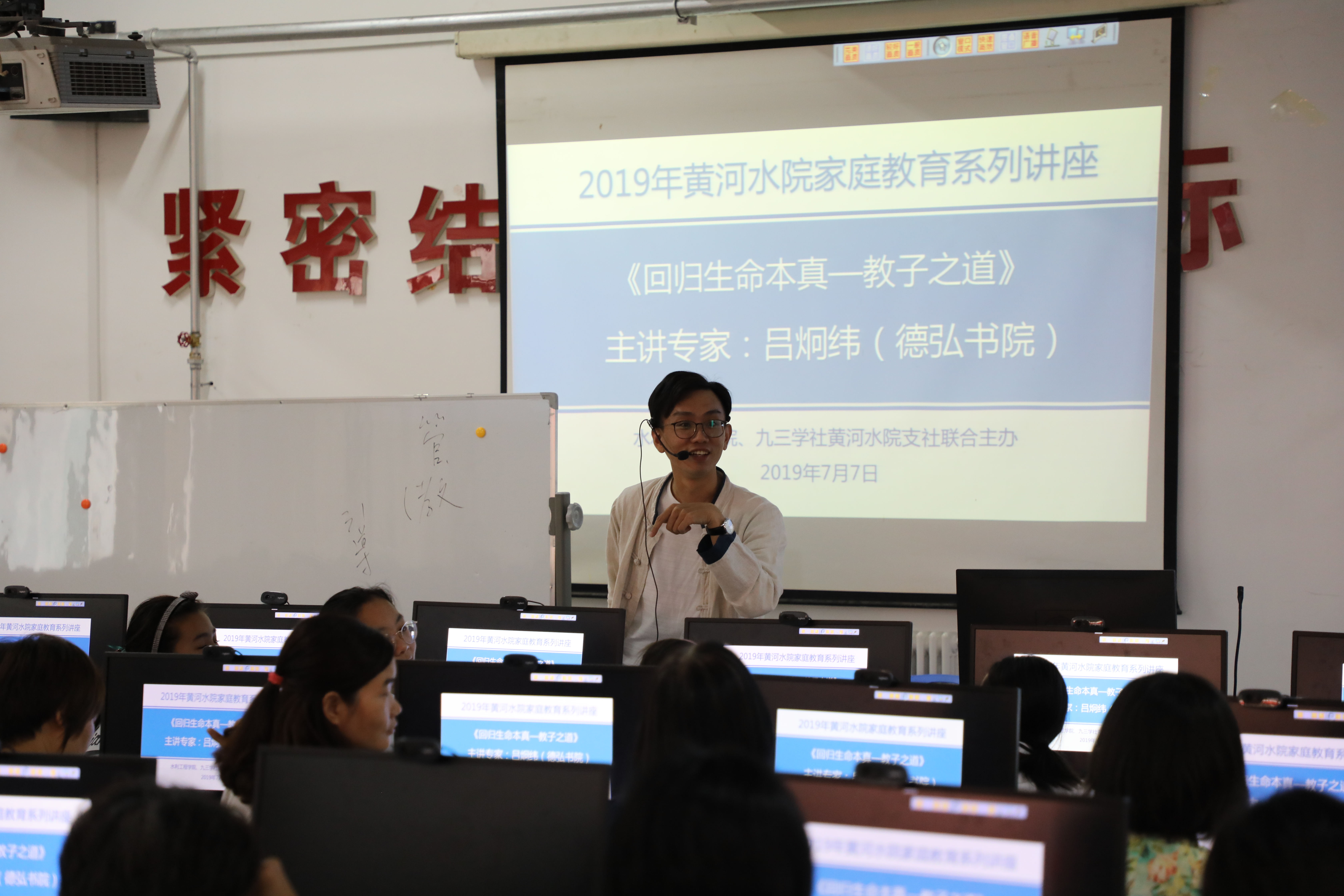 7月7日,水利工程学院与九三学社黄河水院支社联合主办由德弘书院国学高级讲师吕炯纬的《回归生命本真—教子之道》家庭教育系列讲座 ,九三学社部分社员、水利工程学院的部分老师以及敦复书院的部分家长和孩子们聆听了讲座。