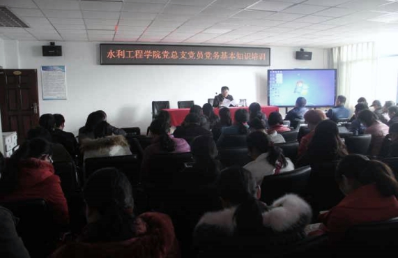 为进一步加强基层党建工作,2018年12月11日水利工程学院在实训楼5310组织开展党员党务基本知识培训会,培训会由水利工程学院党总支书记孙天星主持,水利工程学院全体教师党员参加。