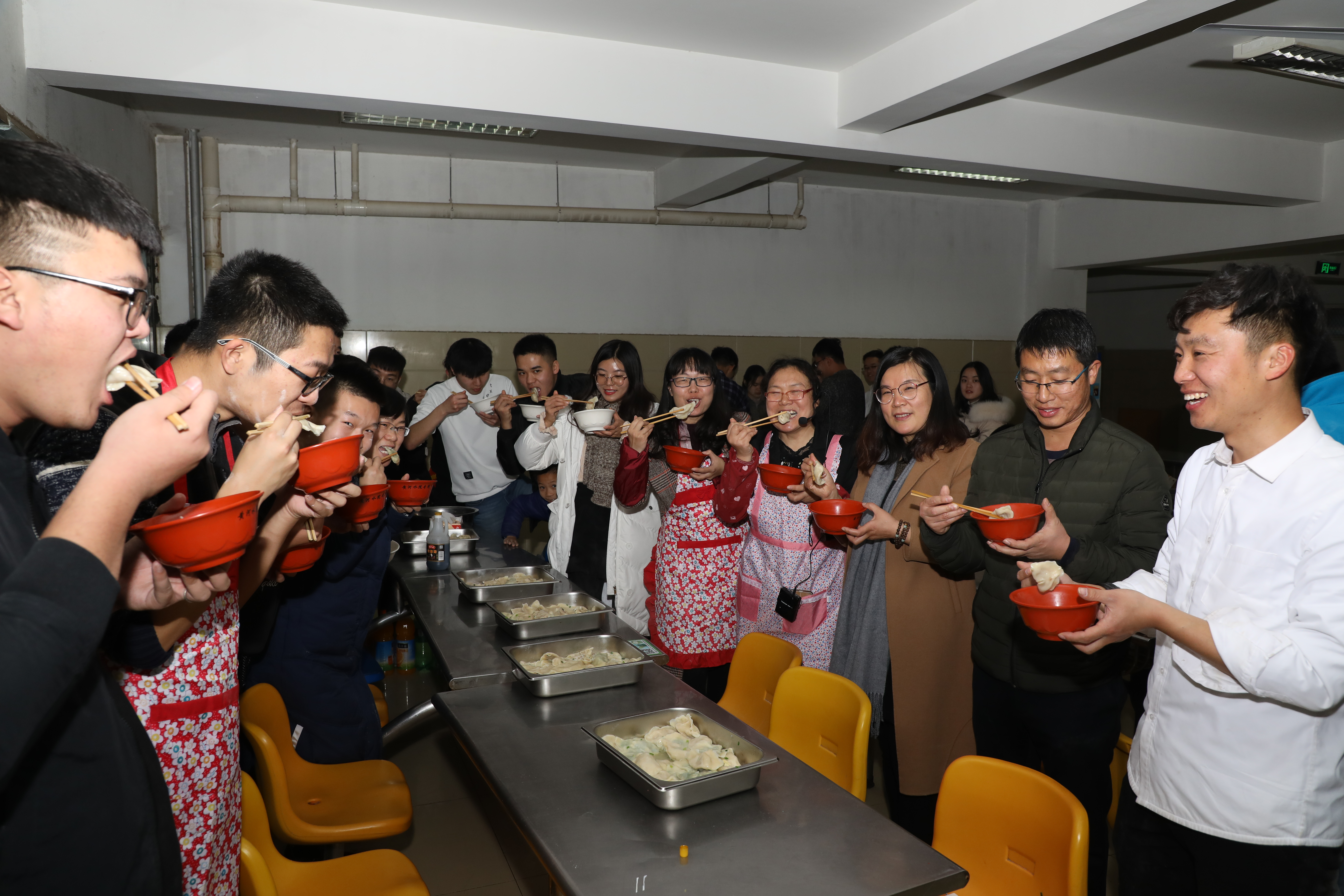 2018年12月21日,在冬至来临之际,为继承并弘扬中华民族的传统美食文化,同时加强团结与交流,我院工程制图教研室的老师们在学校餐厅二楼请CAD及BIM协会的骨干会员包饺子迎冬至关爱学生活动,陶永霞院长到场与40余名师生一起感受冬日浓浓师生情。