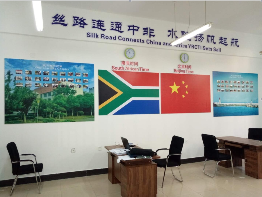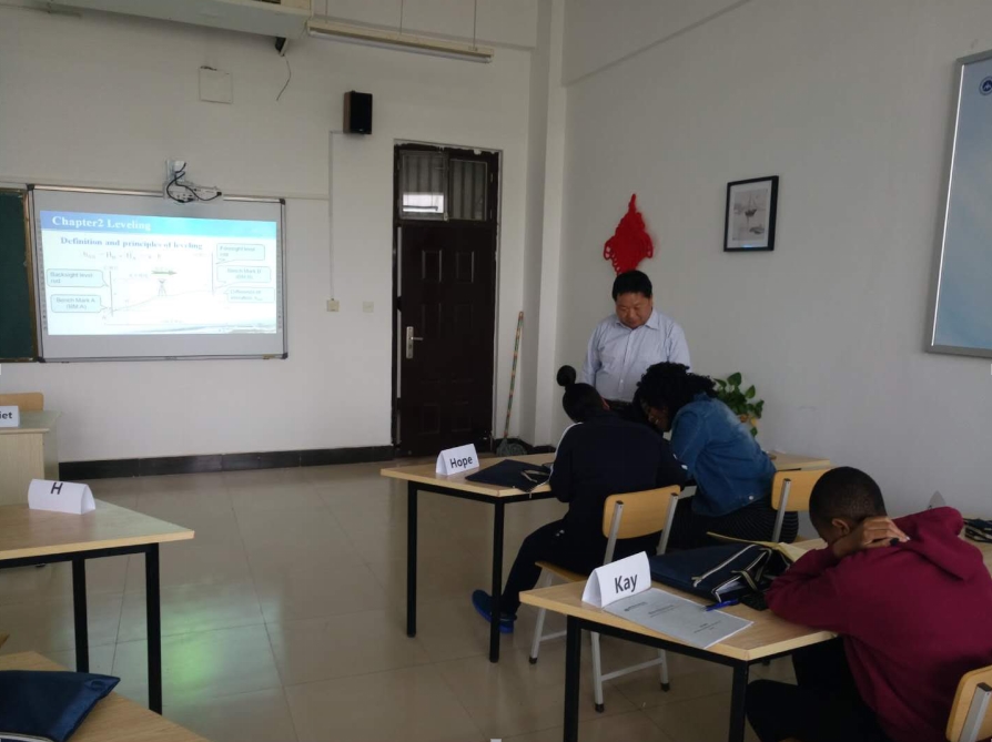 为了让留学生有更好的学习环境,黄河水利职业技术学院水利工程学院、国际教育学院精心布置了2间南非留学生专用教室JX7108和JX7110。教室内配置有电脑、桌椅、电脑、投影、电子白板等教学设备。每间教室能容纳25名留学生。另外,为了管理的方便,及时解决非洲留学生在学习、生活等方面的问题,水利工程学院在留学生教室的旁边布置了南非留学生管理办公室JX7111,专门安排由水利工程学院党总支书记叶建海、院长罗全胜、副书记楚万强及学生管理人员等进行值班。