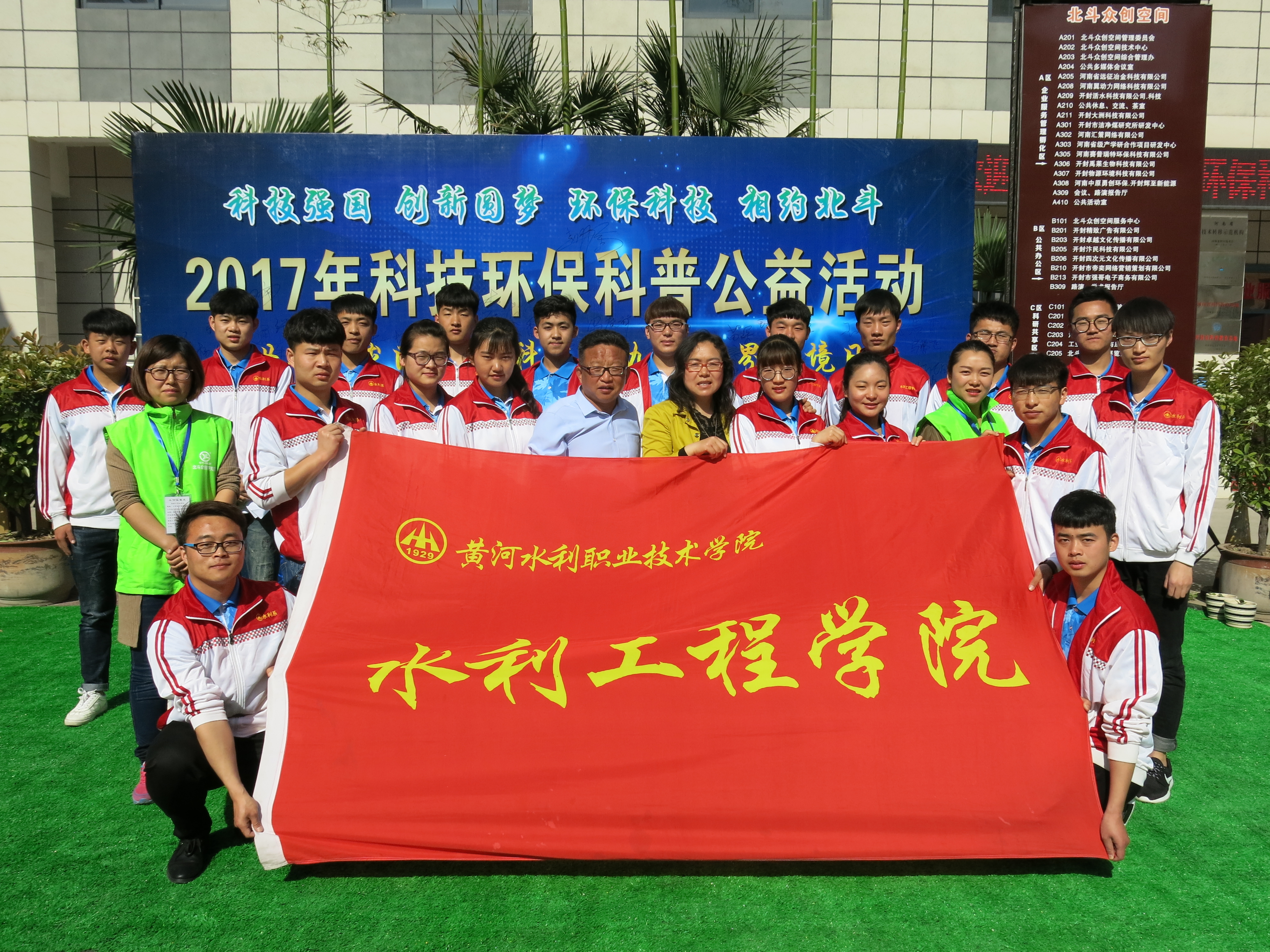 在 “世界地球日” 、 “全国科技活动周” 、 “世界环境日” 三大节日到来之际,黄河水利职业技术学院水利工程学院师生参加了由开封市北斗众创空间组织的2017年科技环保科普公益活动。