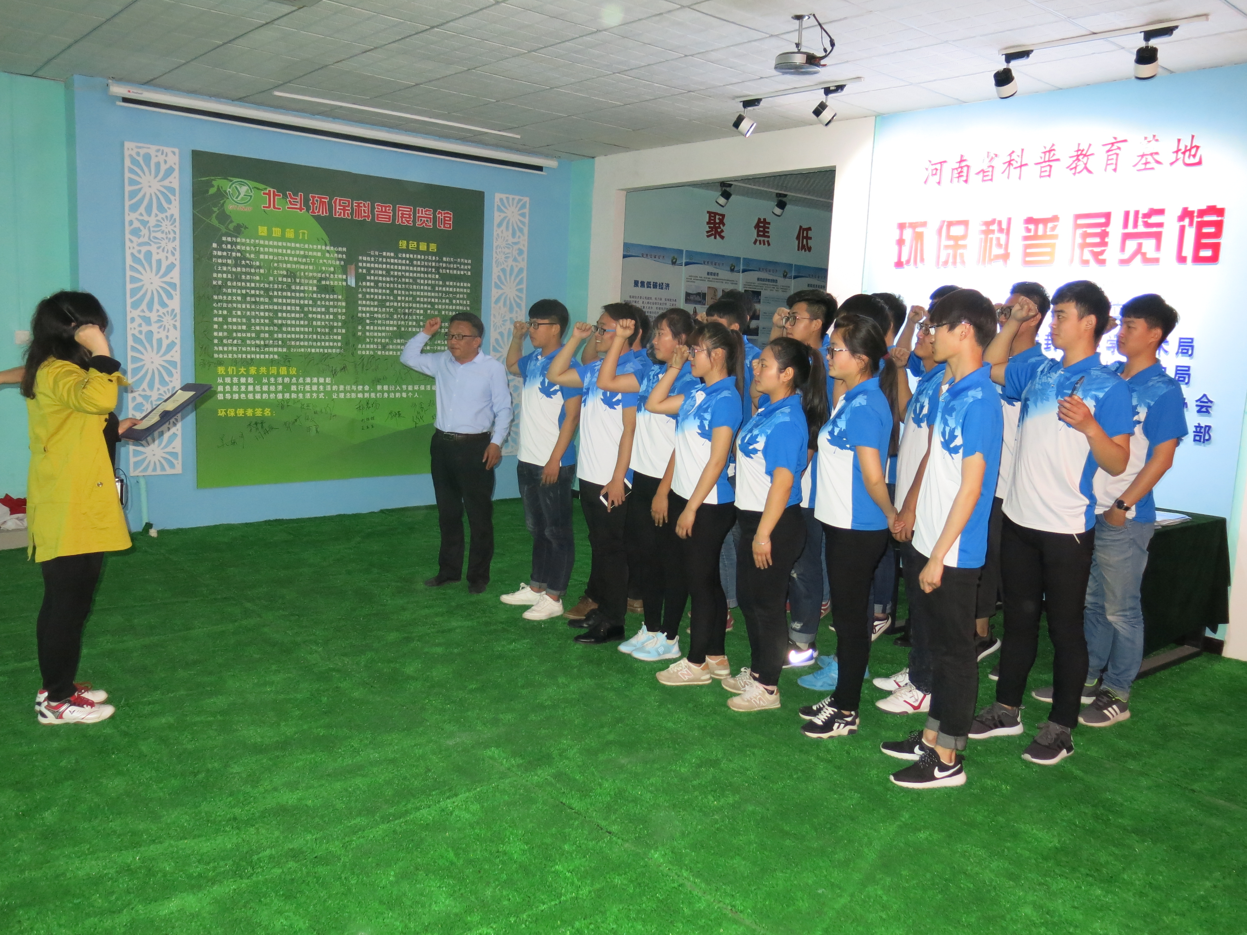 在北斗环保科普展览馆 热闹非凡,师生对环保的认识也更加具体化,大家能意识到环保就在身边,人人都可以做环保。最后师生们一起宣誓:“我志愿加入环保志愿者队伍 ,从我做起,从现在做起, 从点点滴滴做起,保护环境。我郑重承诺,用爱心关注生态环境,用行动践行环保责任”。