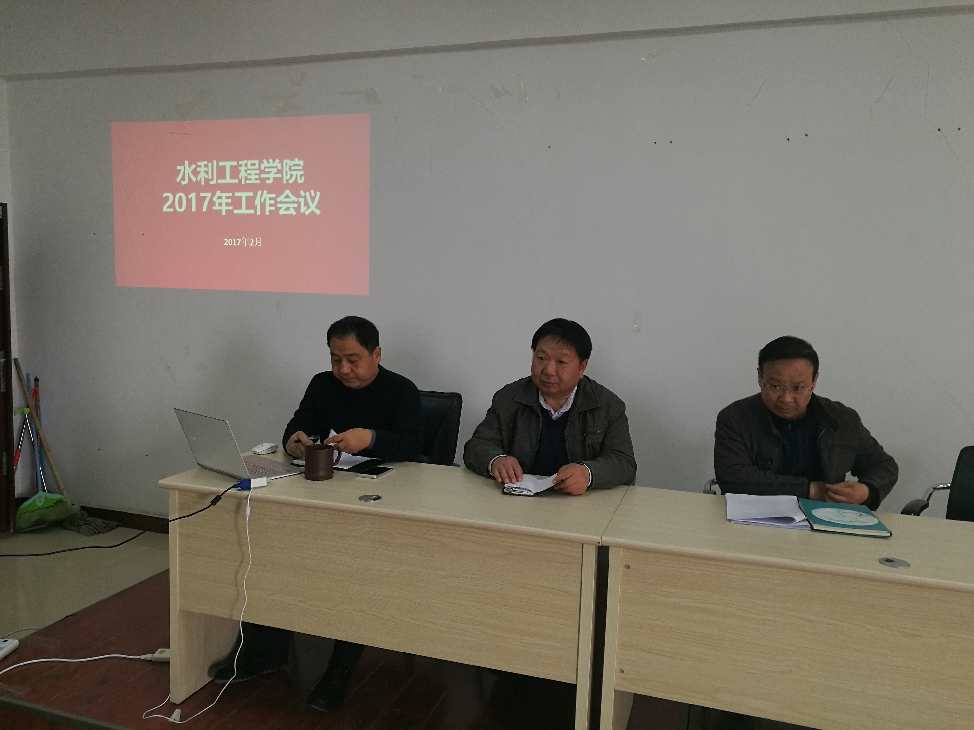 2月14下午在SY5310会议室,水利工程学院召开全体教职工大会。院长罗全胜带领大家学习解读了学校2017年工作要点,并给全院教职工做了“立足现实、改革创新、面向未来”的报告,罗院长就学院师生的现状、高职教育发展形势、创新行动计划工作任务及思路、2017年学院工作要点等进行详实的讲解和安排,强调2017年是学院发展的重要一年,也是工作任务最繁重的一年,要求全院教职工要认清形势,明确任务,全员参与,通力合作,圆满完成2017年各项工作任务,为实现“建成国内一流国际知名的优质高职院校”的目标而努力奋斗。