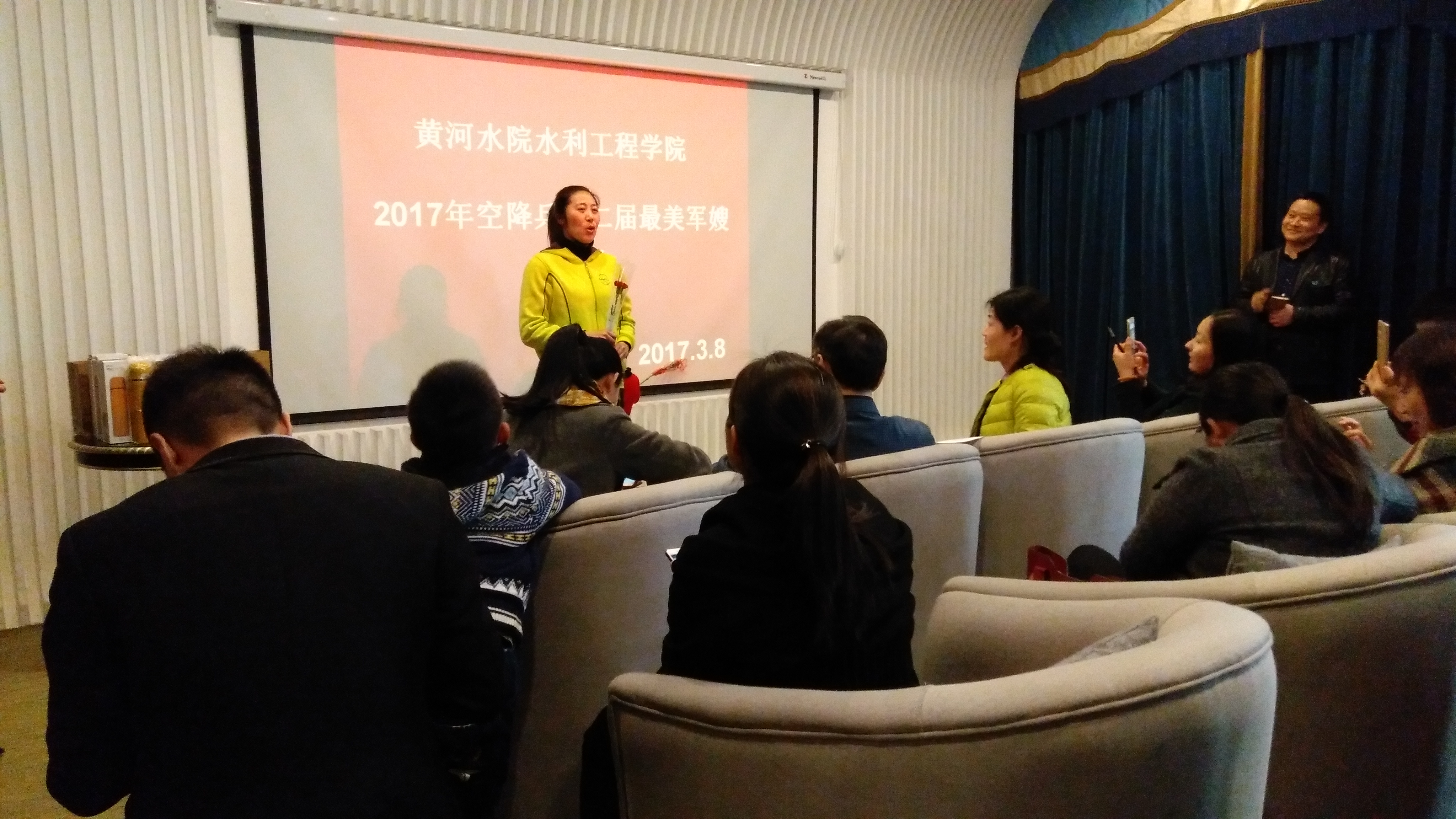 38日下午,水利工程学院进行了 “身边的榜样—最美军嫂郝满”特殊的 三八国际妇女节活动,郝满分享了她的平凡而动人事迹,同事们纷纷为她点赞。分工会主席楚万强对郝满获得2017年空降兵第二届最美军嫂表示祝贺,并对郝满的突出本职工作进行了表彰,还表示今后学院会考虑郝满的特殊情况,帮助解决实际问题,让郝满爱人安心保家卫国,郝满是名至实归的最美军嫂,是水利工程学院的骄傲,是黄河水院的自豪。为表达对郝满的祝贺和钦佩,李忠老师作为代表给最美军嫂献上节日的礼物,送上同事们的美好祝福。