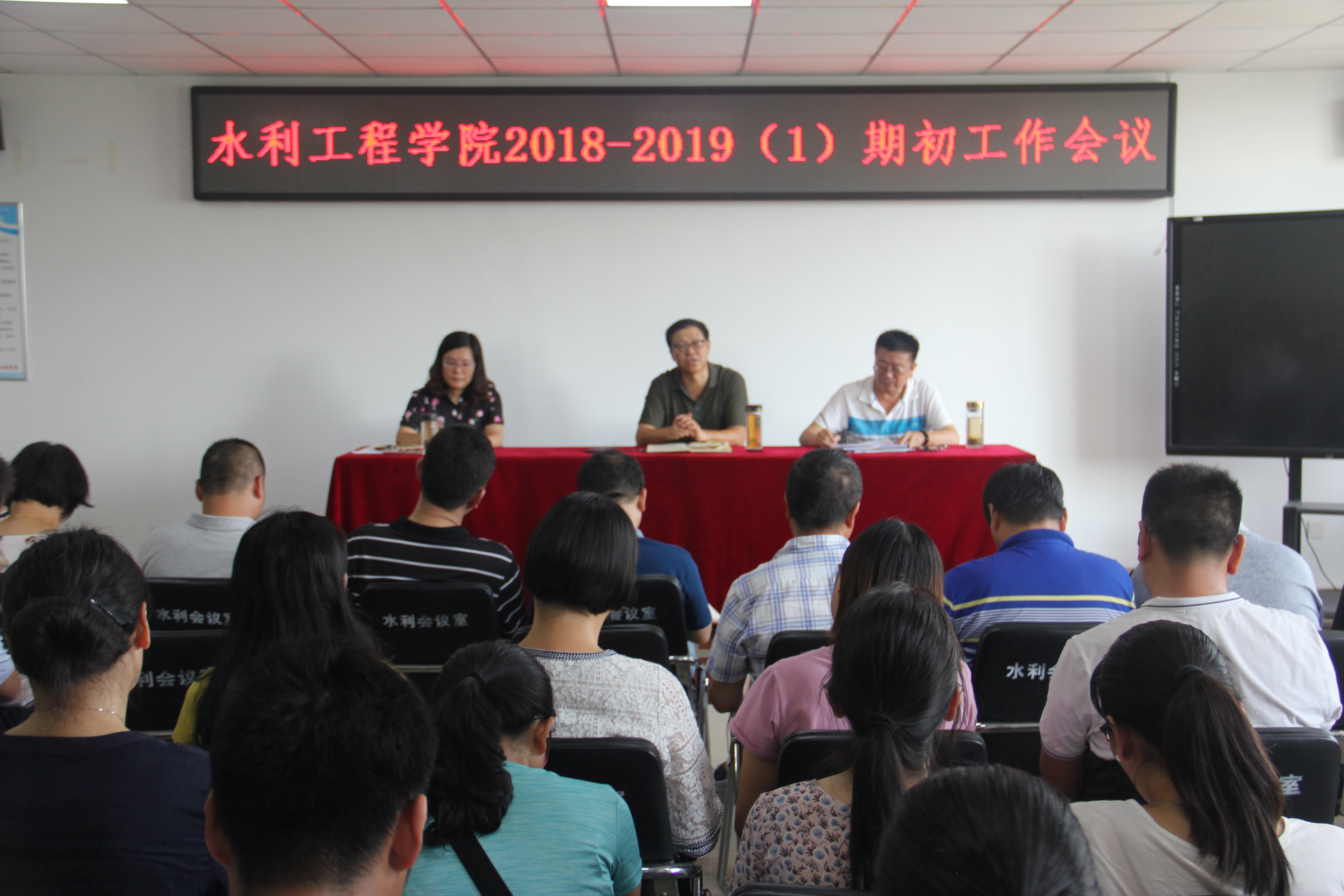 会上,院长陶永霞对暑期完成的召开水工专业国家教学资源库升级改进项目工作推进会、河南省生态水利工程技术研究中心申报等24项工作情况进行总结;随后分析了水利工程学院2018年主要目标完成情况和存在的差距;并对本学期的国家级项目、技能大赛、南非项目培训实习等重点工作进行了安排,她强调2018年任务繁重,全院教职工要齐心协力、共同完成各项目标任务,取得更大成绩。