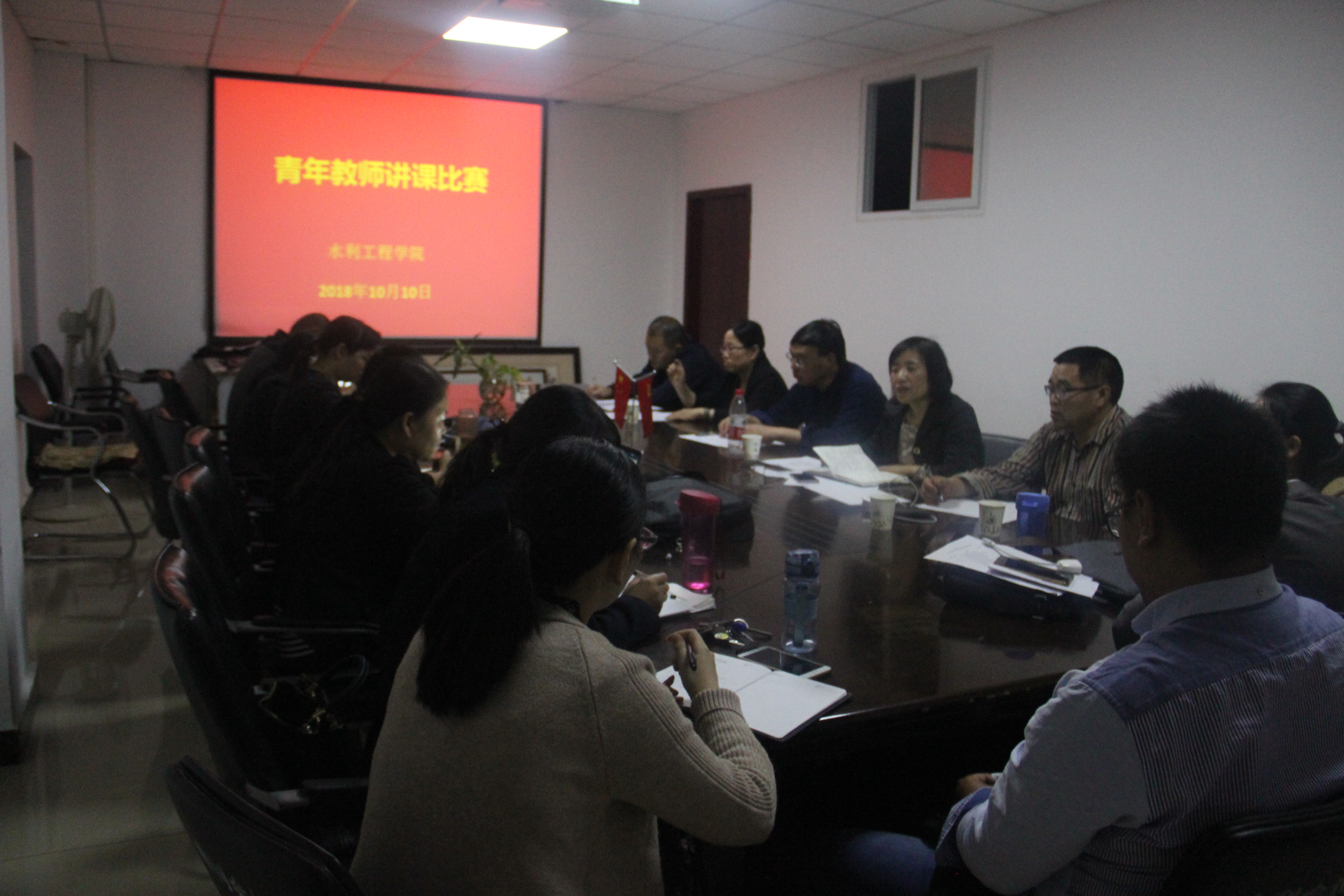 2018年10月10日下午,水利工程学院组织青年教师进行讲课比赛。此次比赛以加强青年教师教学基本功和能力训练为着力点,重点考察教师针对一个教学任务或一个知识点(技能点)进行教学设计和实施教学,达成教学目标的能力。本次比赛由各教研室推出的9名优秀青年教师参加,院长陶永霞、王勤香教授、梁建林教授等为首的7位领导和各专业带头人组成的评委全程参与了听课评课。