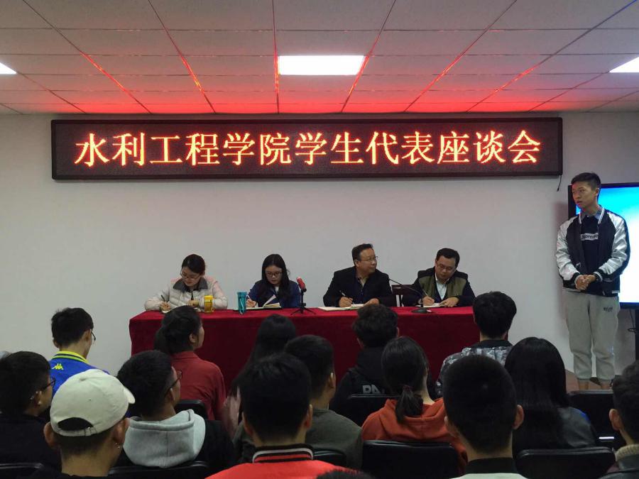 2017年11月6日,水利工程学院于SY5310召开了学生代表座谈会,会议由陈诚副院长主持,2017级辅导员张旭、赵诗捷、王沛霖以及2017级的学生代表参加此次座谈会。