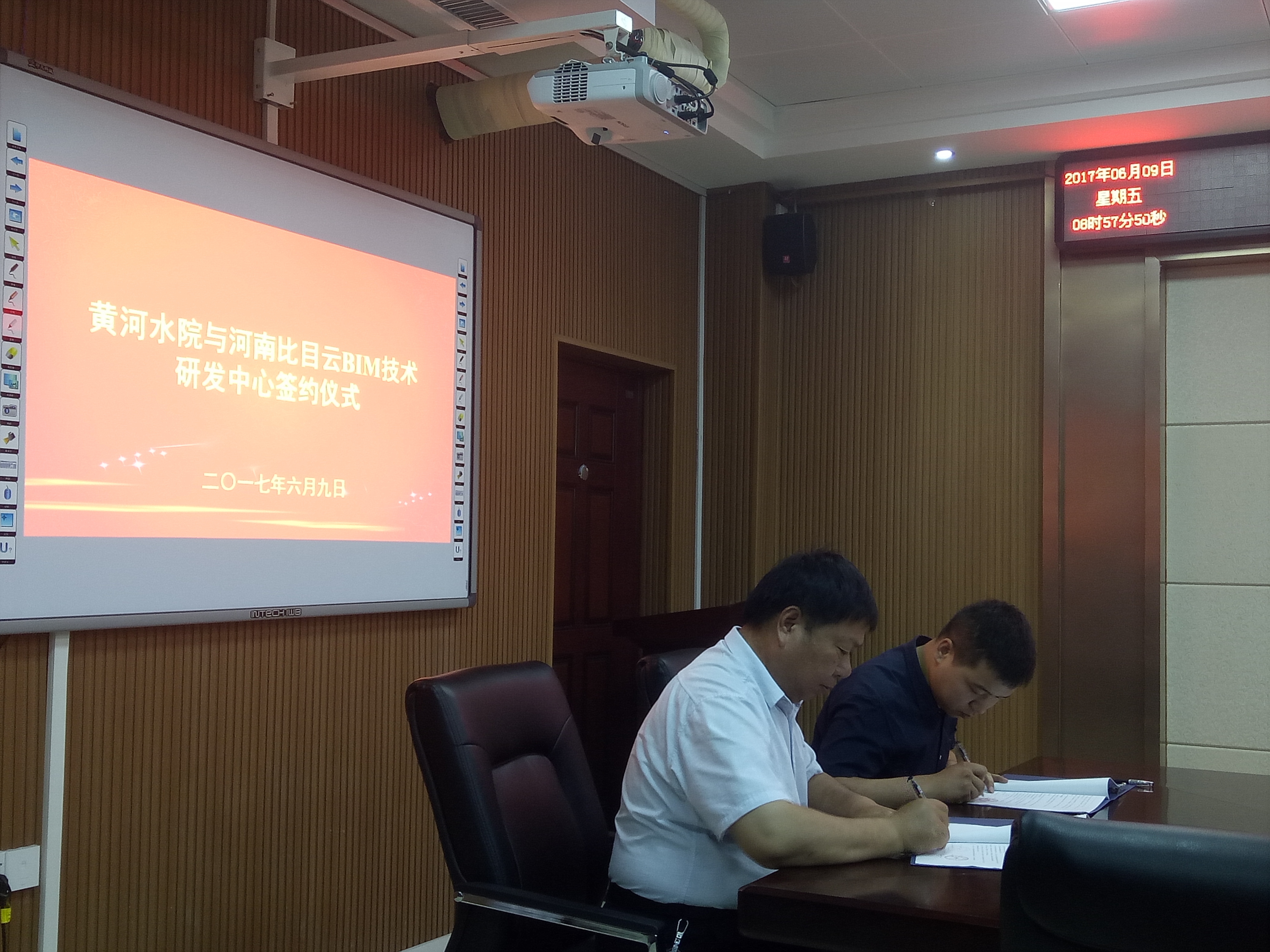 6月9日,我校水利工程学院在5号实训楼会议室召开“河南比目云工程管理有限公司校企合作暨BIM+水利工程研发中心合作”签约仪式。比目云公司慕俊卿董事长,河南比目云公司总工程师计伟、河南比目云公司总经理韩建林,教务处长薛建荣、水利工程学院党委书记叶建海、副书记楚万强、副院长陈诚以及BIM培训团队和骨干教师参加了会议。