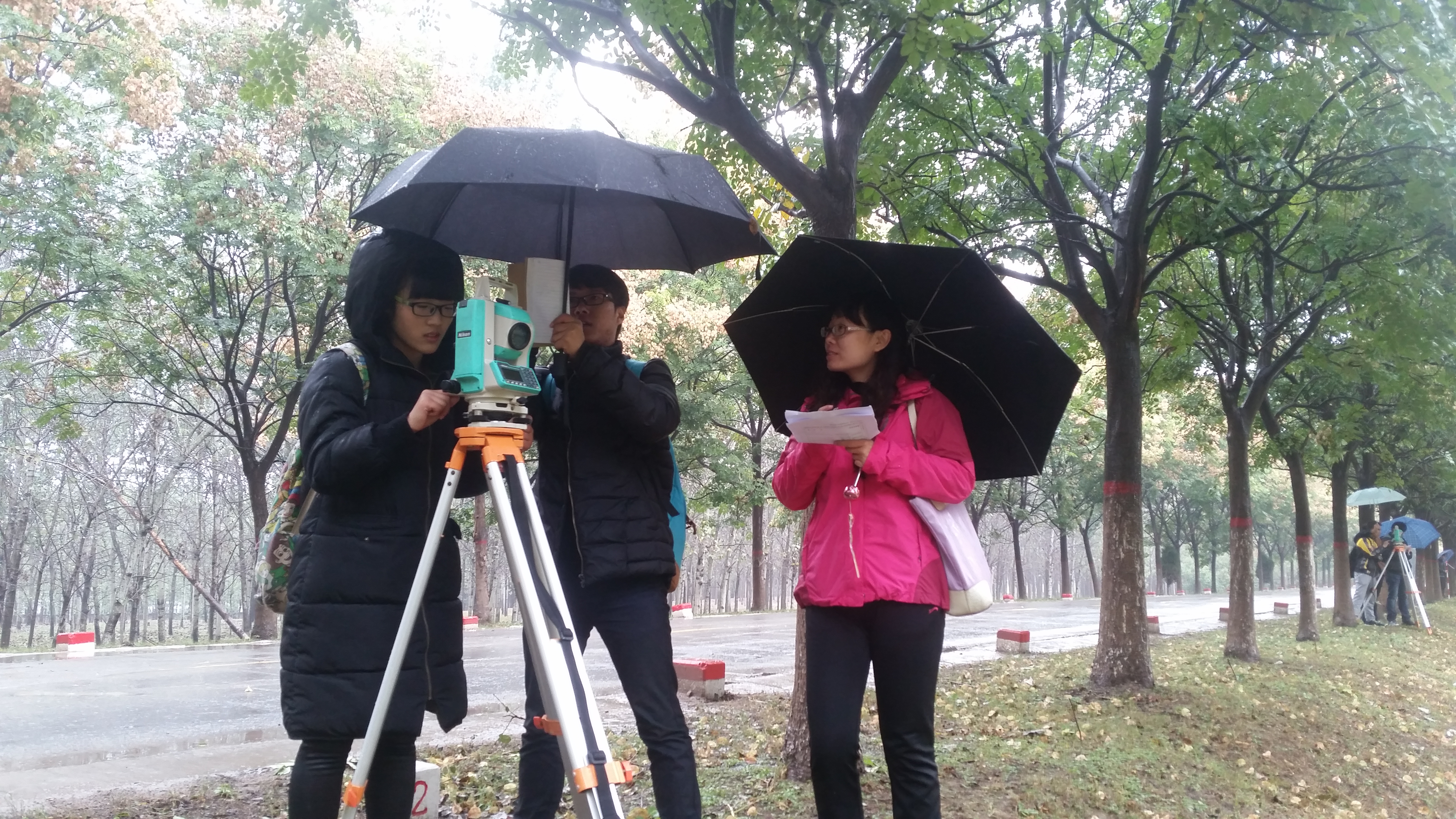 陈副院长在雨中向参加本次竞赛的同学表示鼓励,希望大家能够赛出成绩,赛出本领,虽然天气恶劣,但是作为水利人我们应该不断磨练自我意志,发扬“特别能吃苦,特别能战斗,特别能忍耐”的精神,为本届水利工程测量竞赛画出圆满句号。