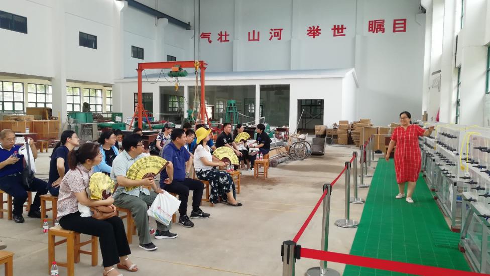 左教授及其团队成员在水利馆参观人工湿地模型实验