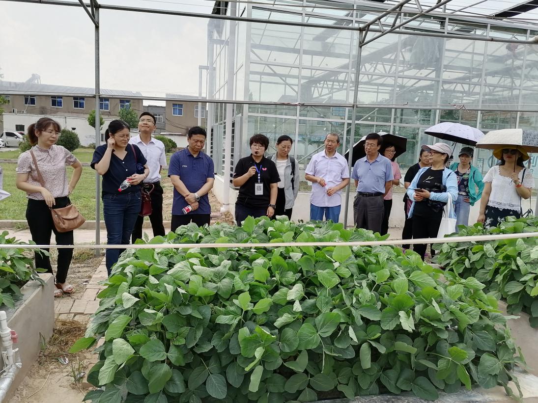 左教授及其团队成员在惠北科学实验站听取大豆节水项目介绍