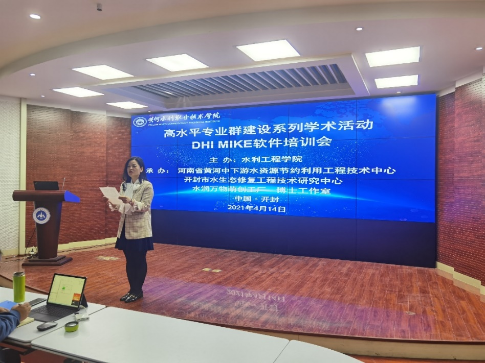 4月14-15日,高水平专业群建设系列学术活动在我校演播厅举行,上海丹华水利应邀开展DHI MIKE水动力学软件培训。水利工程学院各级创新科研平台团队20余名教师参加培训。本次培训会由水利工程学院主办,开封市水生态修复工程技术研究中心和河南省黄河中下游水资源节约集约利用工程技术研究中心承办,水润万物萌创工厂和博士工作室协办,培训会开幕式由冯峰副院长主持。