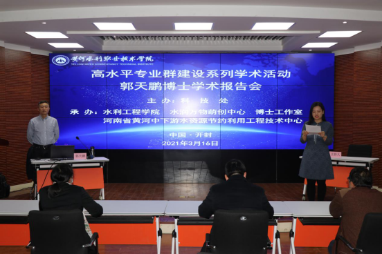 3月16日下午,高水平专业群建设系列学术活动在我校演播厅举行,清华苏州环境创新研究院环境技术集成应用中心副主任郭天鹏博士应邀做《海绵城市在中美两国的发展和工程实践》专题学术报告。水利工程学院全体教职工和学生代表共200余人聆听了报告。报告会由水利工程学院冯峰副院长主持。