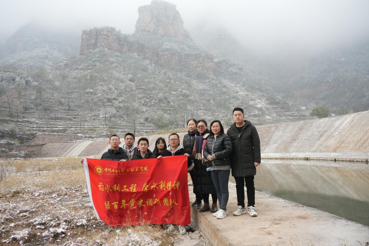寒风凛冽,热情不减。师生团队踏访白家庄空心坝、南谷洞水库、渠首拦河坝,观摩蜿蜒曲折、巧夺天工的“水长城”、“团结洞”、“创业洞”等地标建筑,以设计图纸对照实际工程,知行合一,对工程结构有了深入了解。在红旗渠咽喉工程“青年洞”,走在峭壁下的红旗渠畔,看着悬崖上修渠人一锤一钎凿出的山洞,师生在此读懂了修渠人“劈开太行山,漳河穿山来”的战天斗地事迹,切实感受了引漳入林的艰难,更感受到了建设者们当年的决心和雄心。