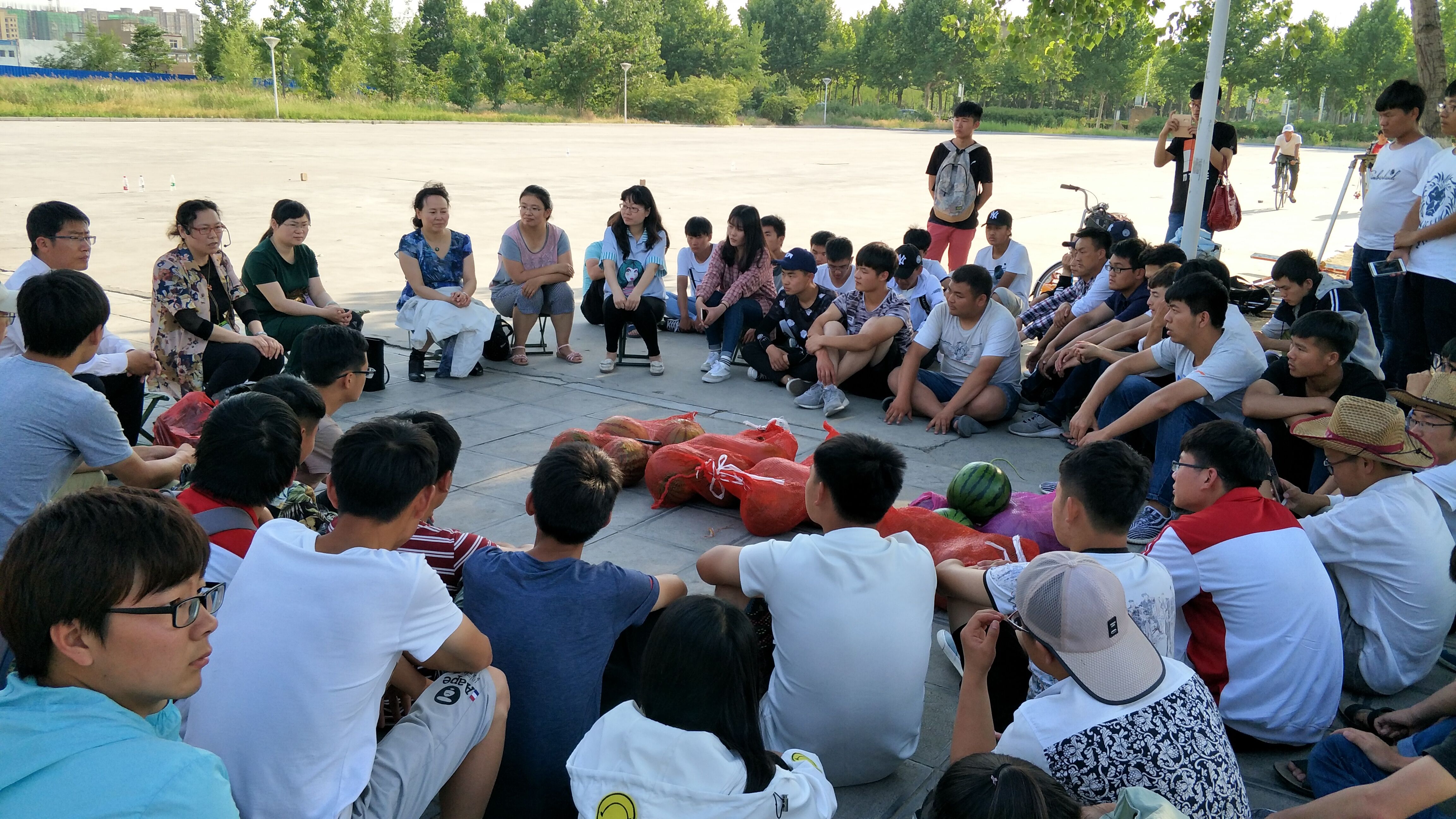 师生们围坐在一起边吃西瓜边聊天,丁秀英老师用自己的工作经历跟同学们分享了测量技能在同学们未来的工作中的重要;李颖老师也以自己在企业锻炼中遇到的亲身经历告诉了同学们测量的准确性有多么重要;陶杰老师送给了同学们六字箴言——安全、守时、用心。张圣敏老师也就同学们测量的辛苦以及认真给予了表扬;关莉莉老师交待同学们在环道测量时一定要注意车辆,保证安全;赵婷老师、张亚坤老师都提醒同学们,注意防晒,饮水防暑。
