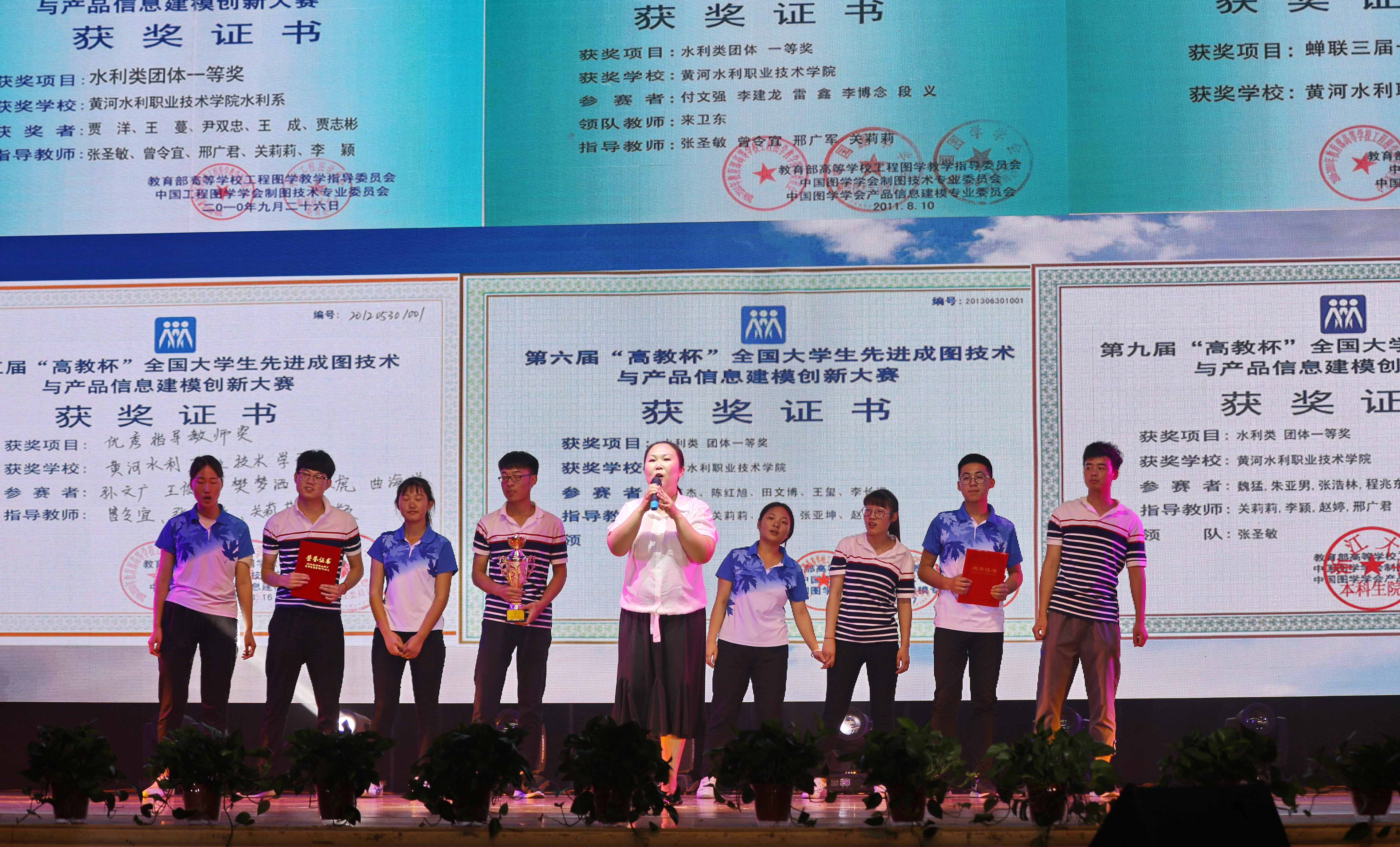 邢广君用记录我院师生10余年来苦练技能,勇夺佳绩的珍贵图片做背景,助演的是CAD竞赛组的同学们,他们以舞台剧的形式,从新生入校、协会招新、技能培训、大赛获奖等回顾了学生在黄河水院的成长和圆梦过程。 每一个人都有自己的梦想,有对未来的憧憬。未来如一把跳动的火焰,闪烁着耀眼而迷人的光彩;未来似一组优美的音符,奏响着动听而激昂的旋律,因为未来,我们充满期望。当踏入黄河水院大门那一刻起就是我们梦想的开始,为了学校建设、为了梦想的实现每一代水院人都在辛勤的工作,默默的奉献,无怨无悔。