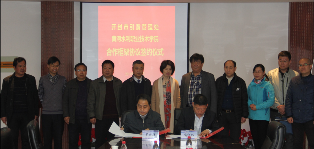 水利工程学院院长罗全胜、开封市引黄管理处处长庞红伟分别代表双方签署了《战略合作框架协议》。签字仪式结束后,水利工程学院领导陪同来访客人参观了了我校 “足迹”文化景观和鲲鹏山实训基地。