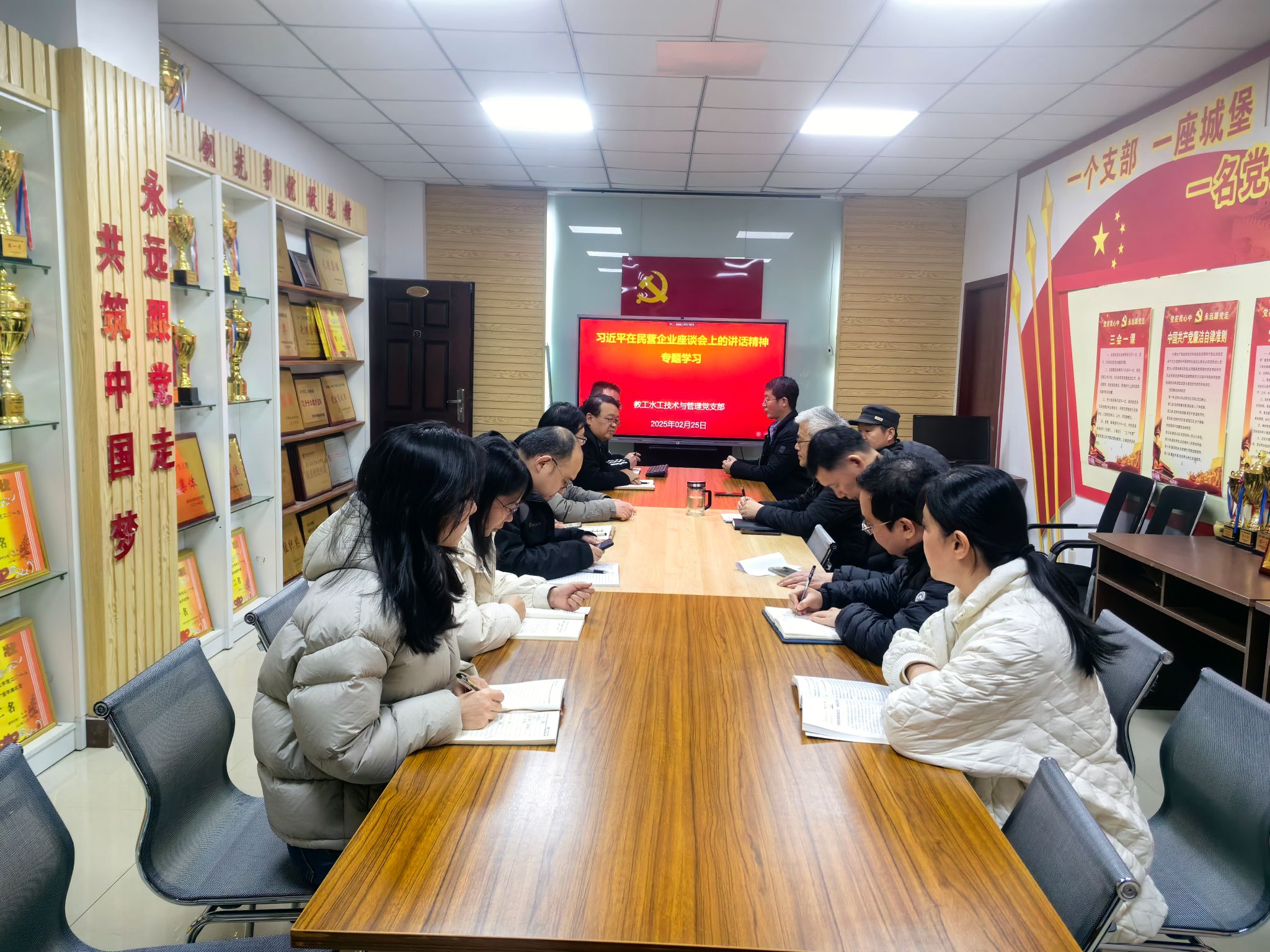 2月25日,教工水工技术与管理党支部全体党员在实训楼5306专题学习《习近平在民营企业座谈会上的讲话》,支部全体党员参加了本次学习。