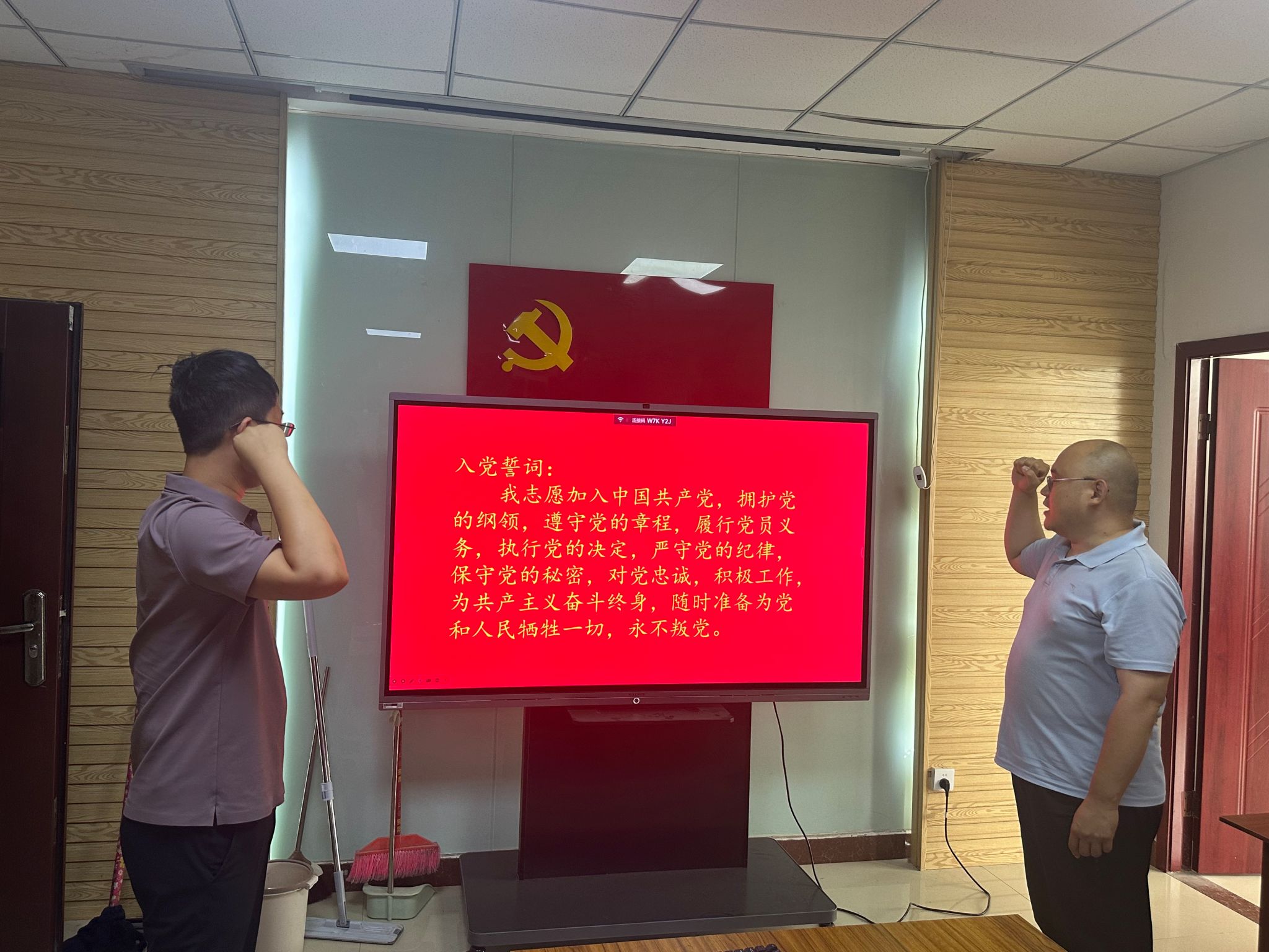 王蒙蒙在党旗下庄严宣誓,表达了对党的忠诚以及为共产主义事业奋斗终生的坚定信念。并表示将倍加珍惜党员身份,牢记党的嘱托,不断提高自身素质,在学习、工作和生活中发挥先锋模范作用,以实际行动践行入党誓言。
