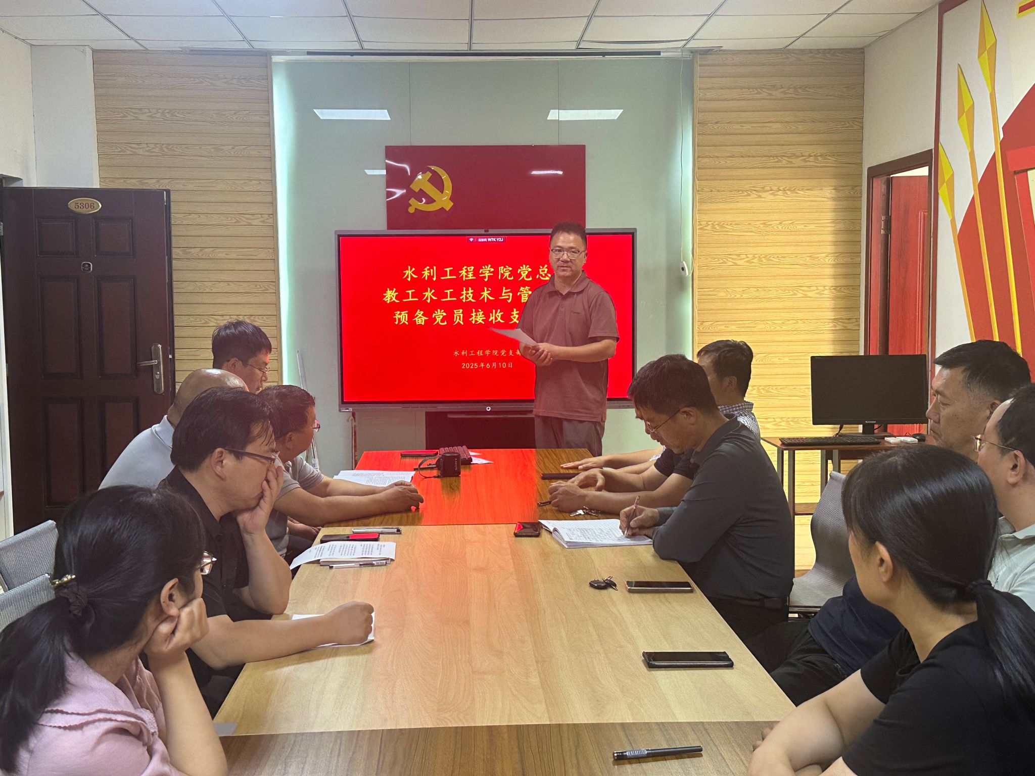 6月10日,教工水工技术与管理支部组织开展了王蒙蒙同志预备党员接收支部大会。此次会议严格按照党员发展程序进行,为党组织注入了新鲜血液,进一步壮大了党员队伍。