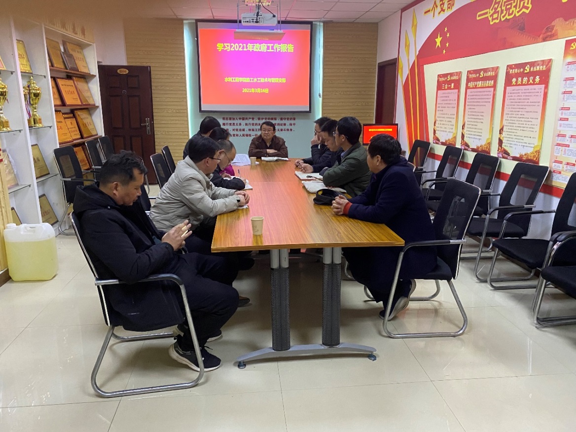 2021年3月16日下午,水利工程学院党总支教工水工技术与管理支部在SY5306党员活动室开展政治学习,学习内容是2021年李克强总理在“两会”上做的政府工作报告,本次学习活动由支部书记王建伟同志主持。
